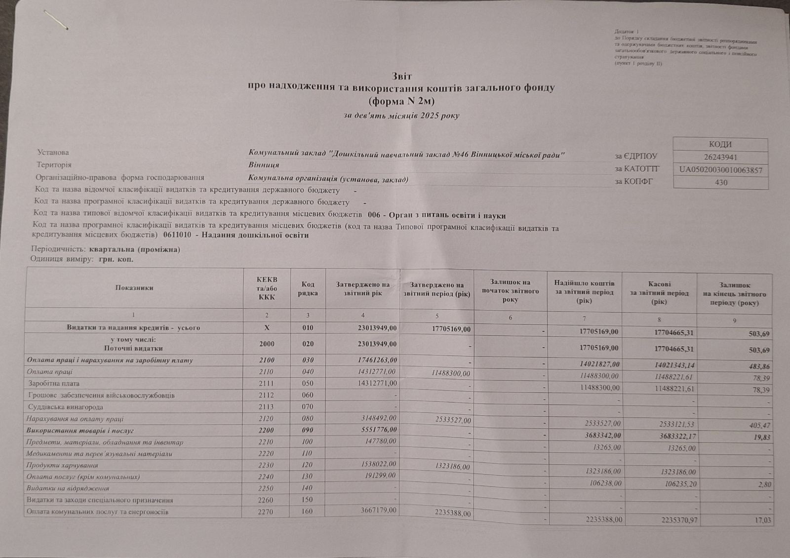 Навігація записів Звіт про надходження та використання коштів загального фонду за 9 місяців 2025 року