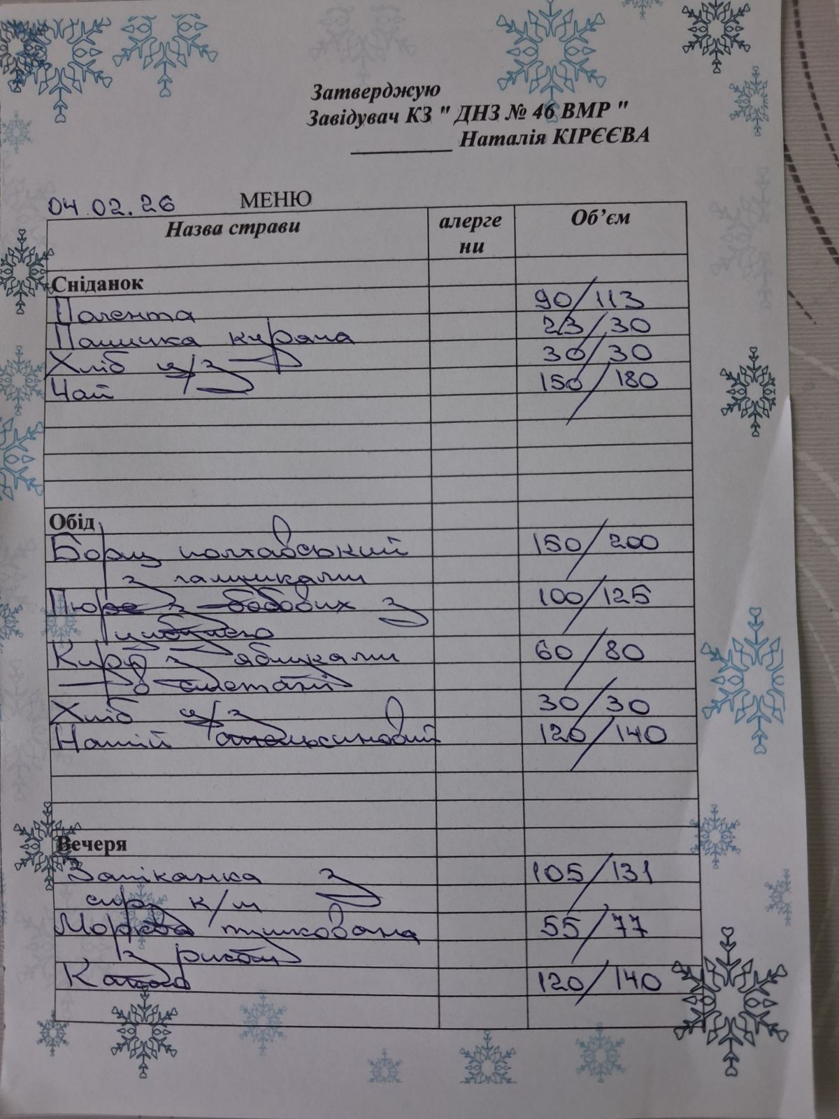 МЕНЮ на 04.02.2026