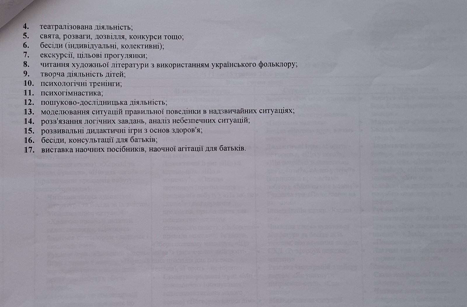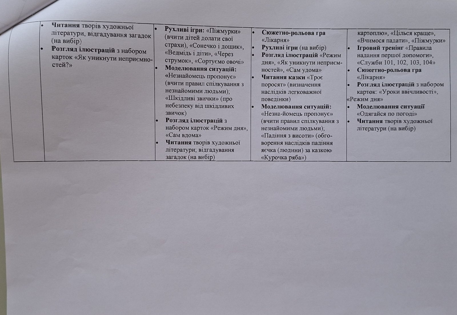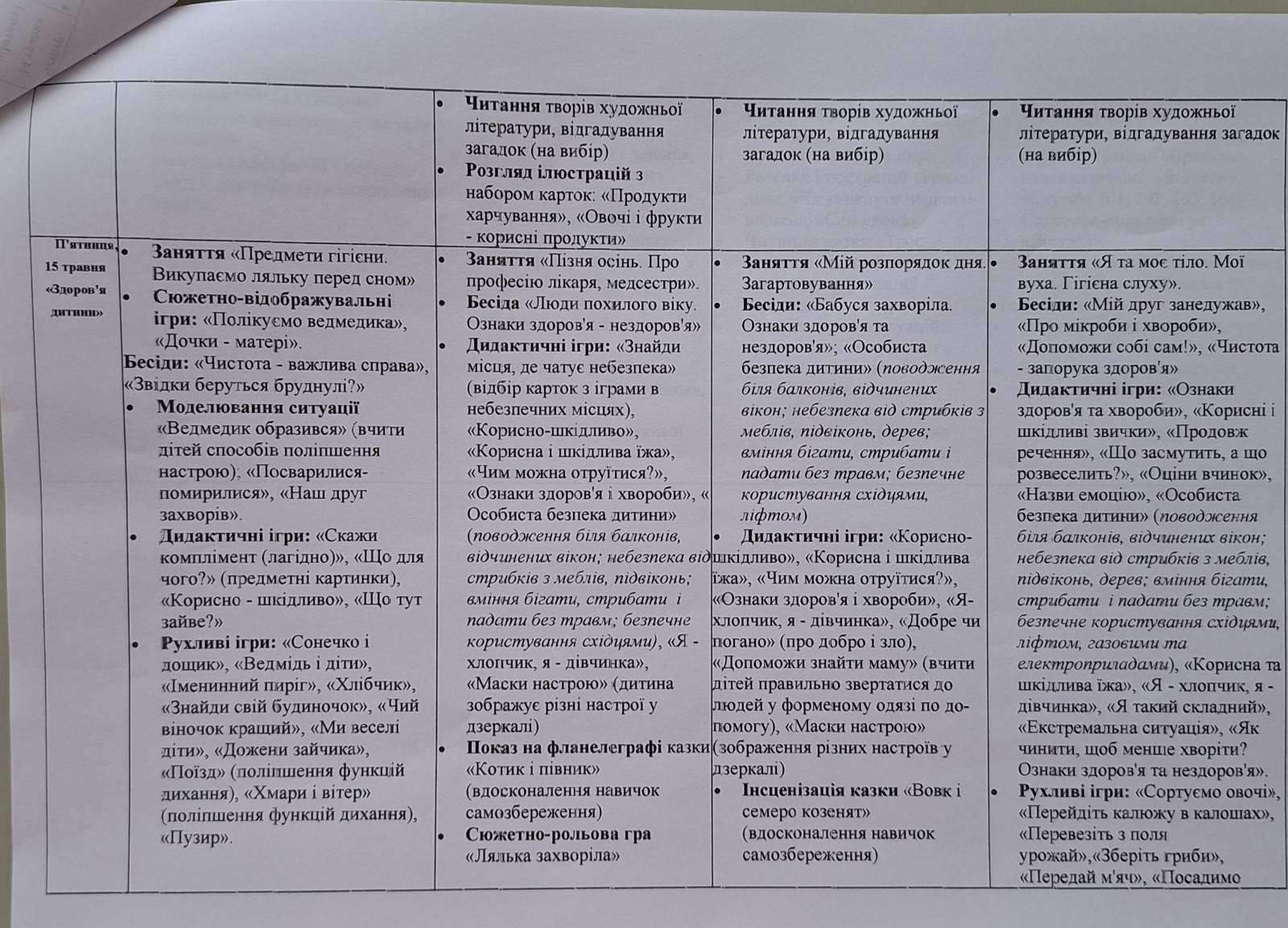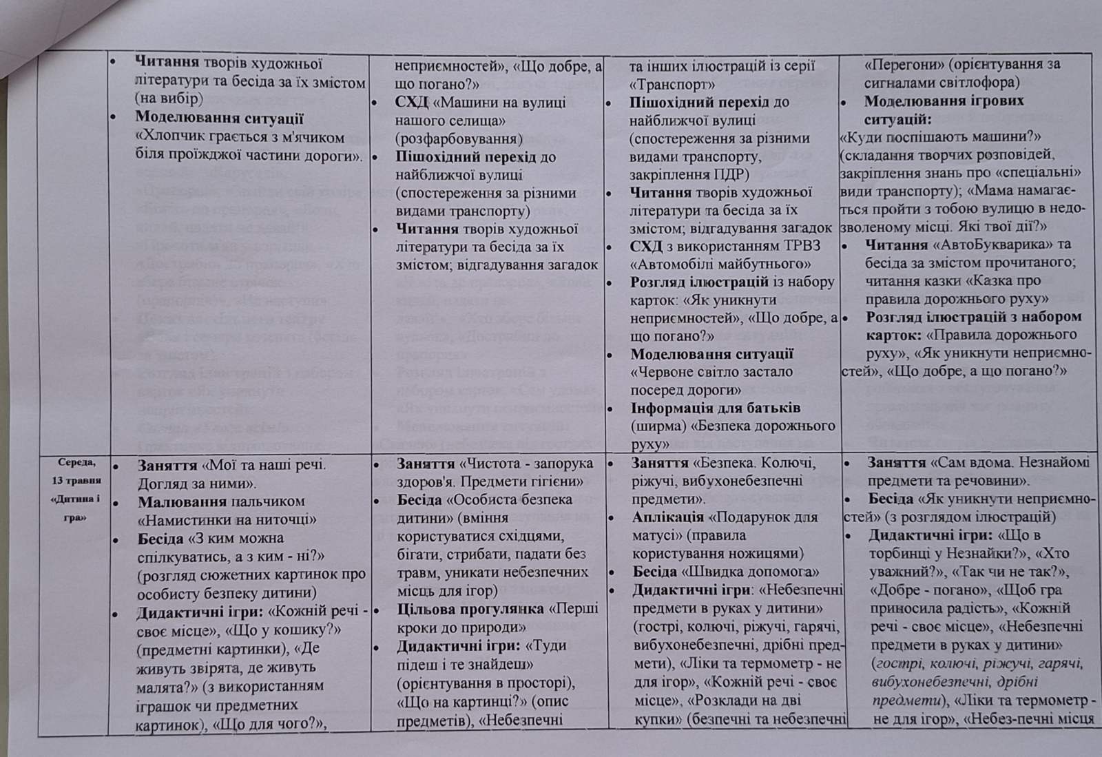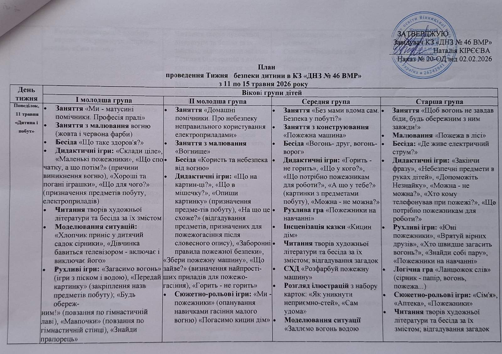 План проведення “Тижня безпеки дитини” в КЗ “ДНЗ №46 ВМР” з 11 по 15 травня 206 року